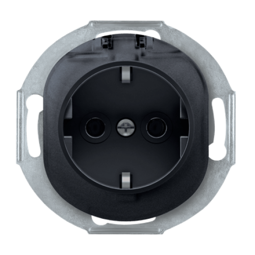 Розетка с заземлением с поликарбонатовой вставкой и крышкой Aling Conel серии EON. Цвет "Черный" (E633.E1)