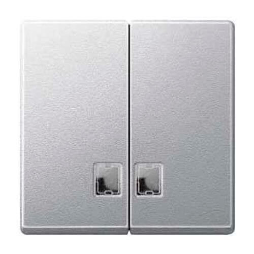 Двойная клавиша с бесцветным прямоугольным окошком для световой индикации Merten System M. Цвет Алюминий MTN437560