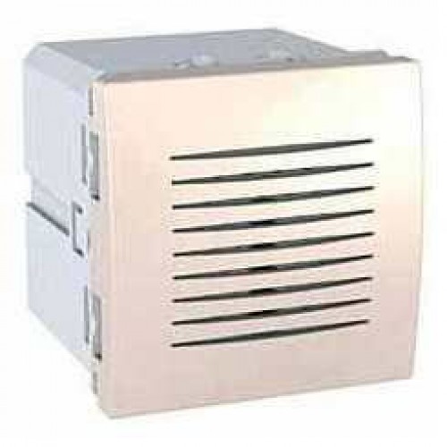 С кнопочным выключателем для подачи звукового сигнала следует купить электронный звонок 230В 5 мелодий (MGU3.786.25) от Schneider Electric премиум серии Unica в корпусе белого цвета. Устройство предусматривает выбор одной из пяти мелодий на Ваше усмотрение.
