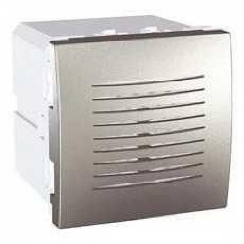 С кнопочным выключателем для подачи звукового сигнала следует купить электронный звонок 230В 5 мелодий (MGU3.786.30) от Schneider Electric премиум серии Unica в корпусе цвета алюминий. Устройство предусматривает выбор одной из пяти мелодий на Ваше усмотрение.