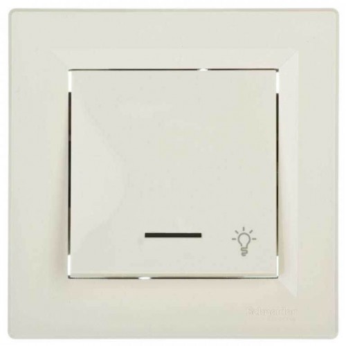 Кнопочный выключатель с подсветкой и символом свет Asfora IP20 кремовый (EPH1800123)