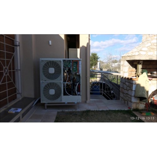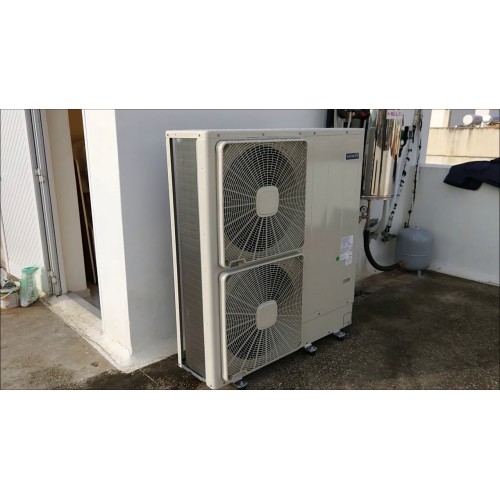 Тепловой насос «Воздух-Вода» с низкотемпературным режимом работы в исполнении «моноблок» с дистанционным управлением. Является мультифункциональным, поскольку имеет способность обогревать помещение, выполнять функцию кондиционера и нагревать воду для личного потребления.