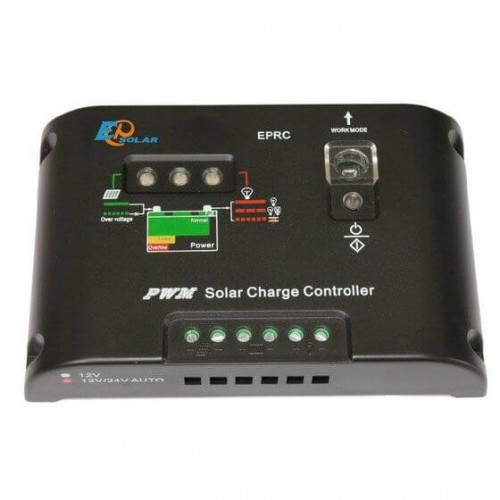 PWM (ШИМ) контроллер EPSolar EPRC10-EC поддержавает зарядный ток до 10 Ампер и предназначен для аккумуляторов или систем АКБ напряжением 12 или 24 Вольт. Выбор напряжения происходит автоматически, при подключении к аккумуляторной батарее. Подходит для переносных и стационарных систем солнечных модулей, мощностью не более 260 Ватт.