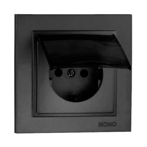 ⚡Розетка c заземлением и крышкой серии Despina (Mono Electric). Цвет Графит
