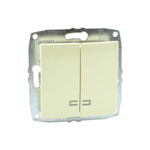 Механизм выключателя двухклавишного с подсветкой 10А серии Despina (Mono Electric) Кремовый с клавишей