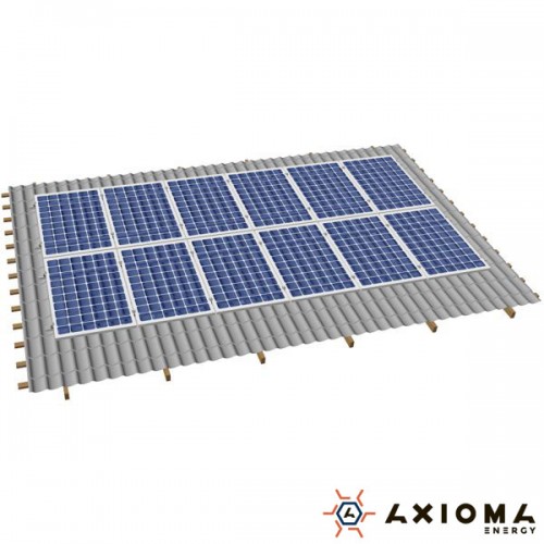 Система креплений на 12 панелей параллельно крыше, алюминий 6005 Т6 и оцинкованная сталь, AXIOMA energy
