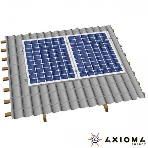Система креплений на 3 панели параллельно крыше, алюминий 6005 Т6 и нержавеющая сталь А2, AXIOMA energy