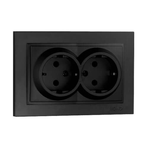 Розетка з заземленням подвійна серії Despina (Mono Electric). Колір Графіт