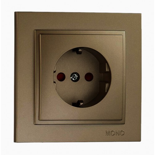 Розетка з заземленням та захисними шторками серії Despina (Mono Electric). Колір Бронза