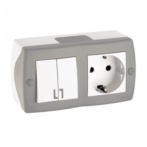 Вимикач двоклавішний + розетка з заземленням Octans Mono Electric. Колір Сірий