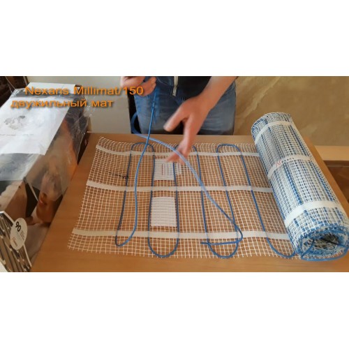 Нагрівальний мат Nexans Millimat/150 (000000964) 1800 Вт, 12.0 м² — являє собою досить тонку конструкцію гнучкої і тонкої скло-волоконної сітки з клейкою основою, в яку вплетений двожильний кабель з алюмінієвою захисною трубкою.