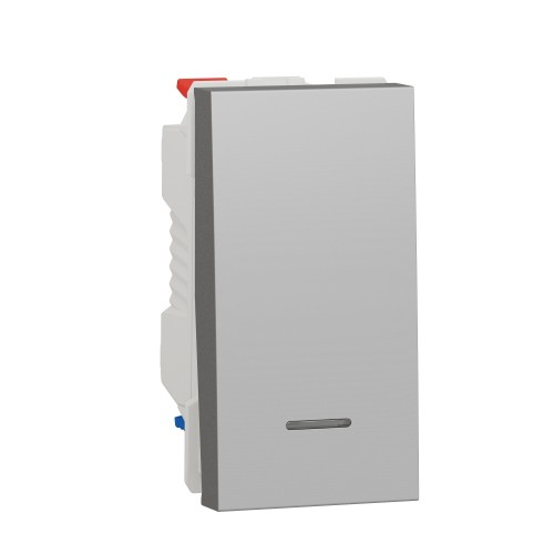 Характеристики перемикача одноклавішного з нейтраллю 10А 1 модуль Unica New алюміній (NU310330S)