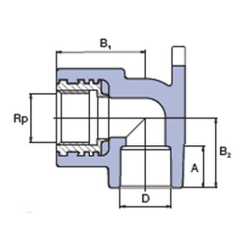 - Размеры: D=25мм, Rp=3/4”, A=16,0мм, B1=40,0мм, B2=40,0мм