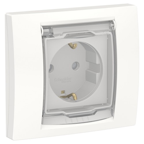 Розетка з заземленням, зі шторками та прозорою кришкою Unica New біла (NU003718)