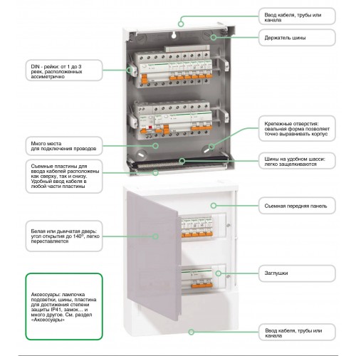 Розподільчі щити компанії Schneider Electric серії Mini Pragma виготовлені в Італії, мають відкритий тип монтажу і призначені для монтажу модульного електрообладнання в побутових умовах житлових приміщень, в офісах і компаніях, що працюють у сфері обслуговування.