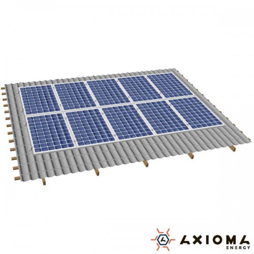 Система креплений на 10 панелей параллельно крыше, алюминий 6005 Т6 и оцинкованная сталь, AXIOMA energy