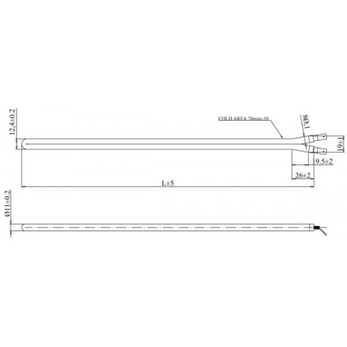 Сухий ТЕН 0,9 кВт, труба (нержавіюча сталь)