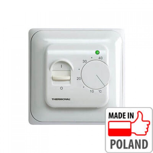 На лицевой части терморегулятора THERMOVAL TVM05 расположен индикатор работы (свечение диода означает режим нагрева). Гарантия на изделие - 1 год.