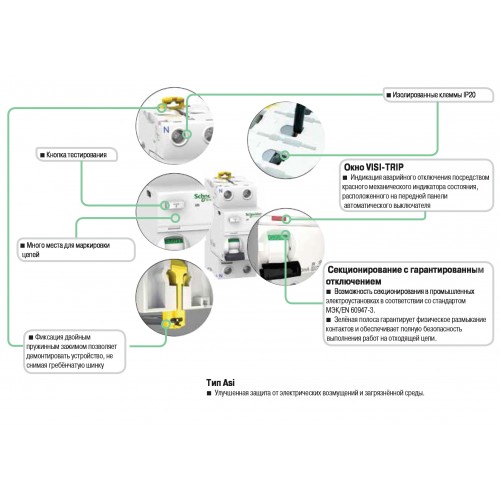 Пристрій захисного відключення - диференційний вимикач навантаження Schneider Electric iID 63 (A9R44263).