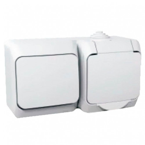 Комбинированный наружный блок розетка + выключатель 16A IP44 Cedar Plus. Цвет Белый